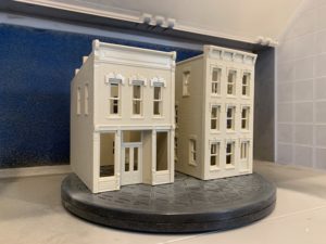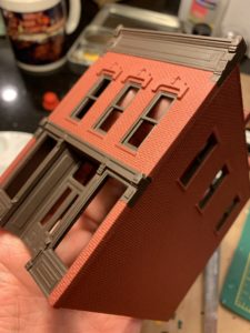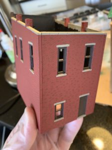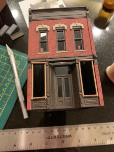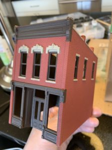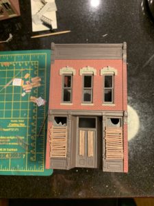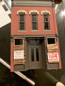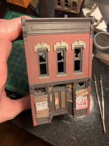 I started this project on April 7, 2019, a few months after purchasing the Design Preservation Models (Woodland Scenics) kit “Kelly’s Saloon” at the train show in Puyallup. The idea to model a derelict storefront came when browsing Pittsburgh Bureau of Building Inspection photographs on Historic Pittsburgh.